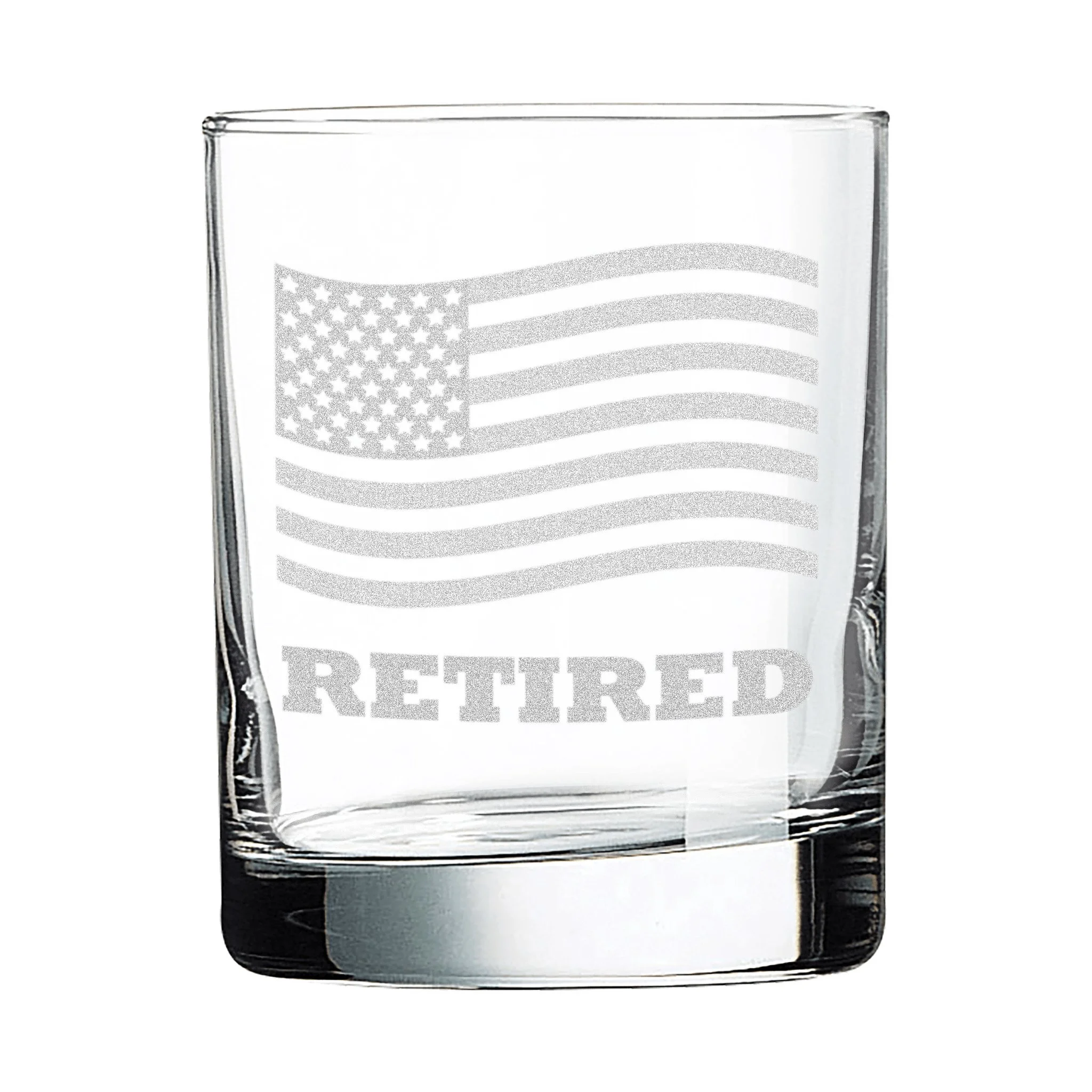 Engraved "Retired" American Flag Whiskey Glass - The Perfect Military Retirement Gift